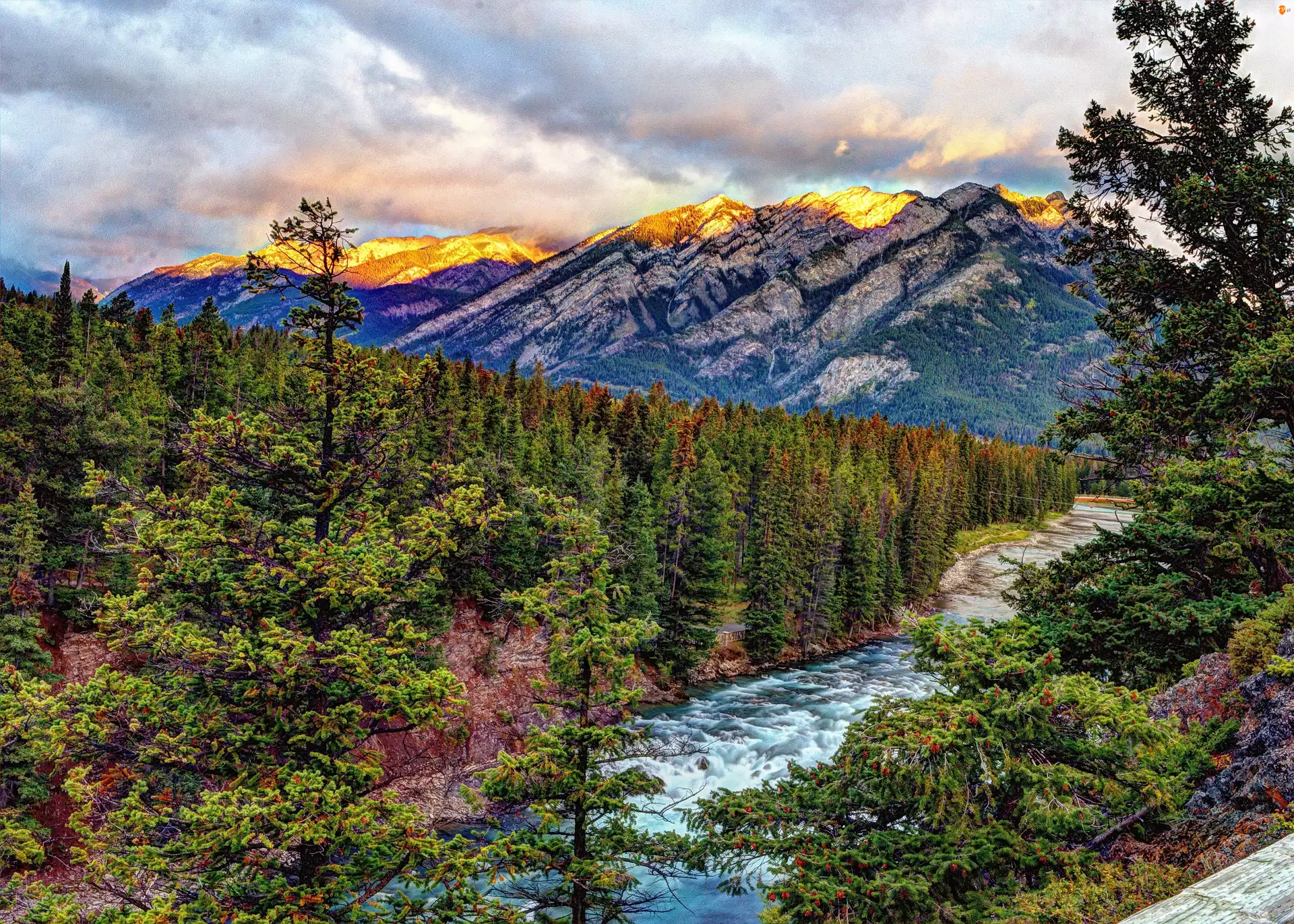 Góry, HDR, Rzeka, Las