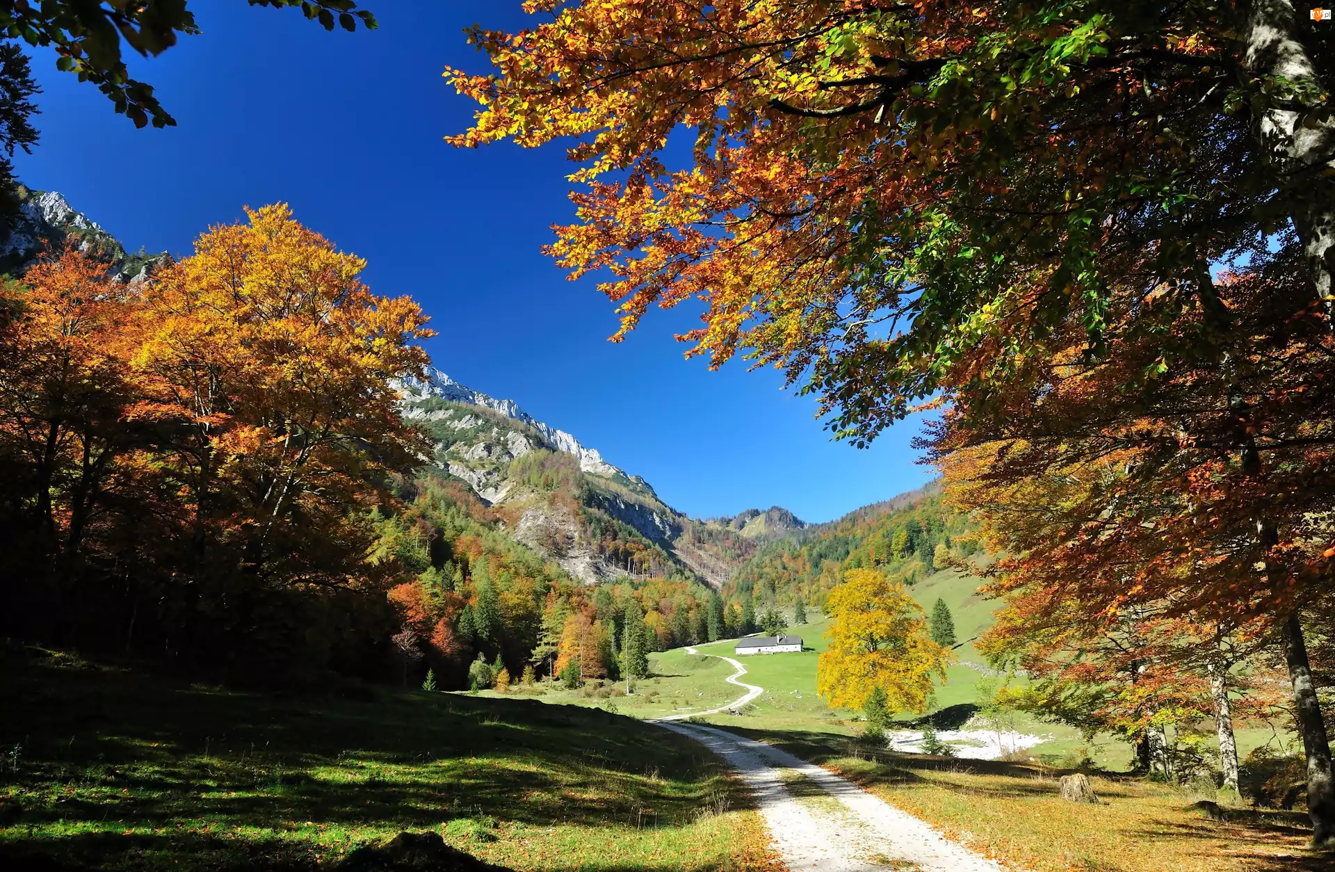 Jesień, Góry, Droga, Drzewa