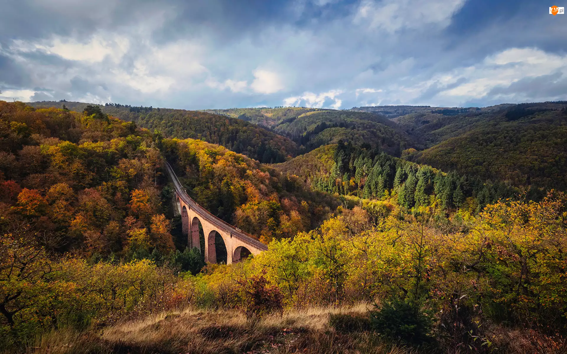 Góry, Lasy, Niemcy, Jesień, Hubertusviadukt, Most, Drzewa