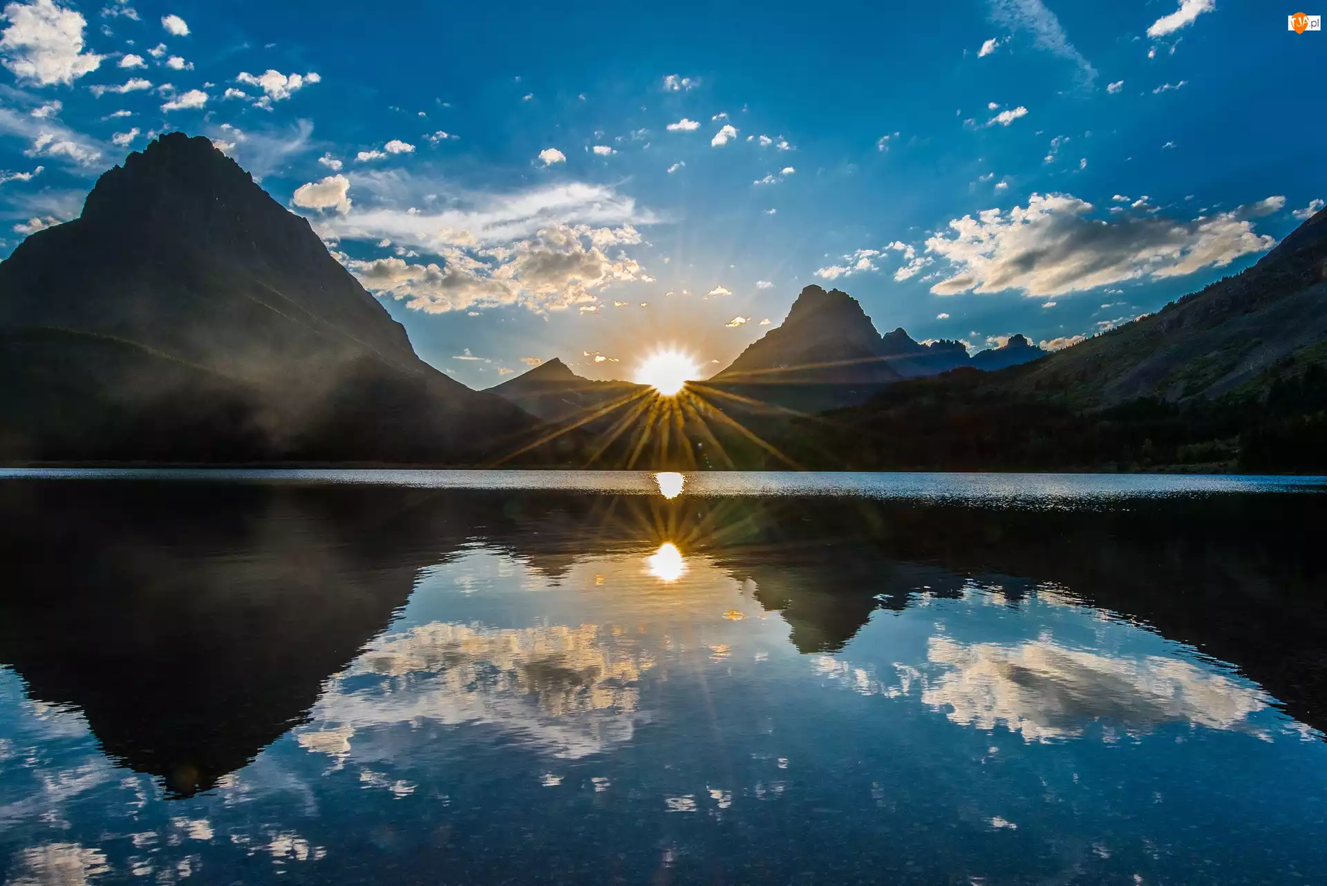 Góry, Odbicie, Jezioro, Wschód Słońca