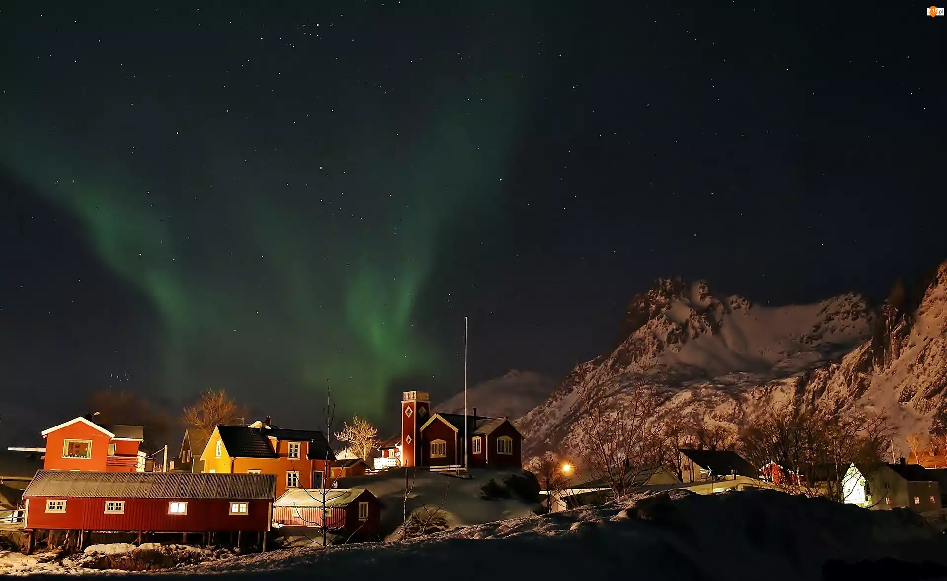 Góry, Polarna, Domy, Lofoty, Osada, Zorza