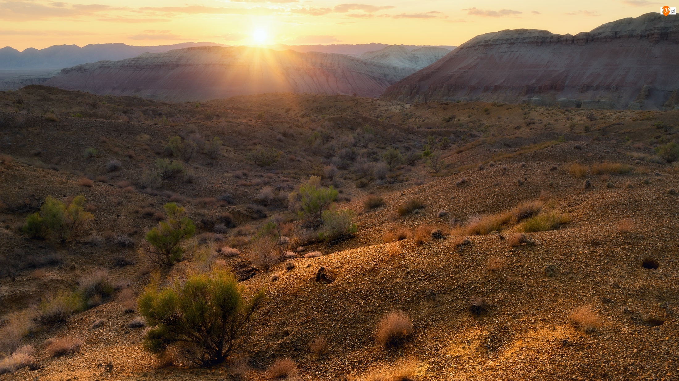 Góry, Roślinność, Wzgórza, Wschód słońca,