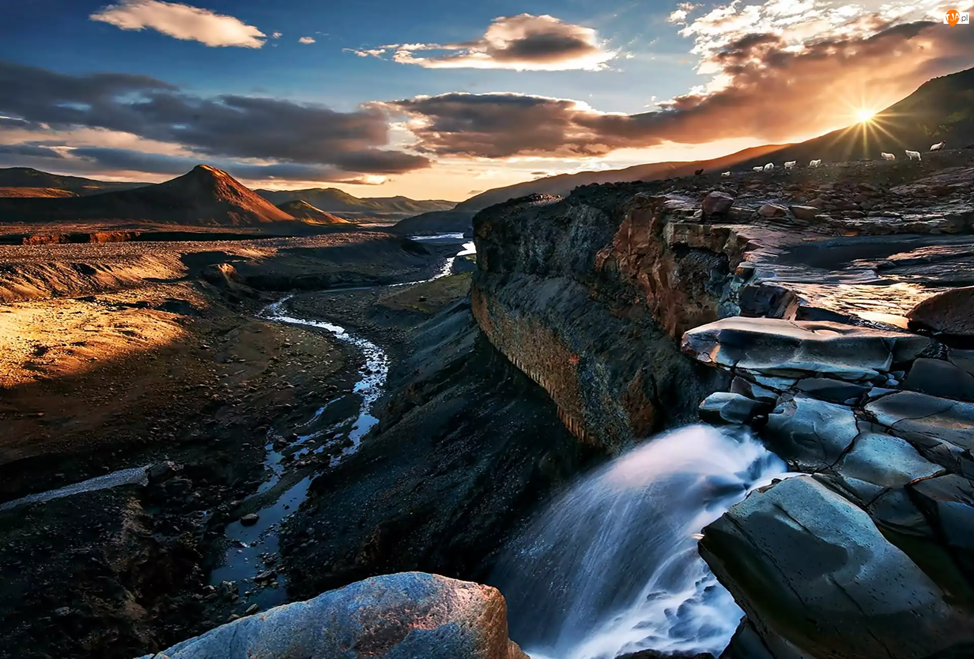 Góry, Świt, Rzeka, Wodospad