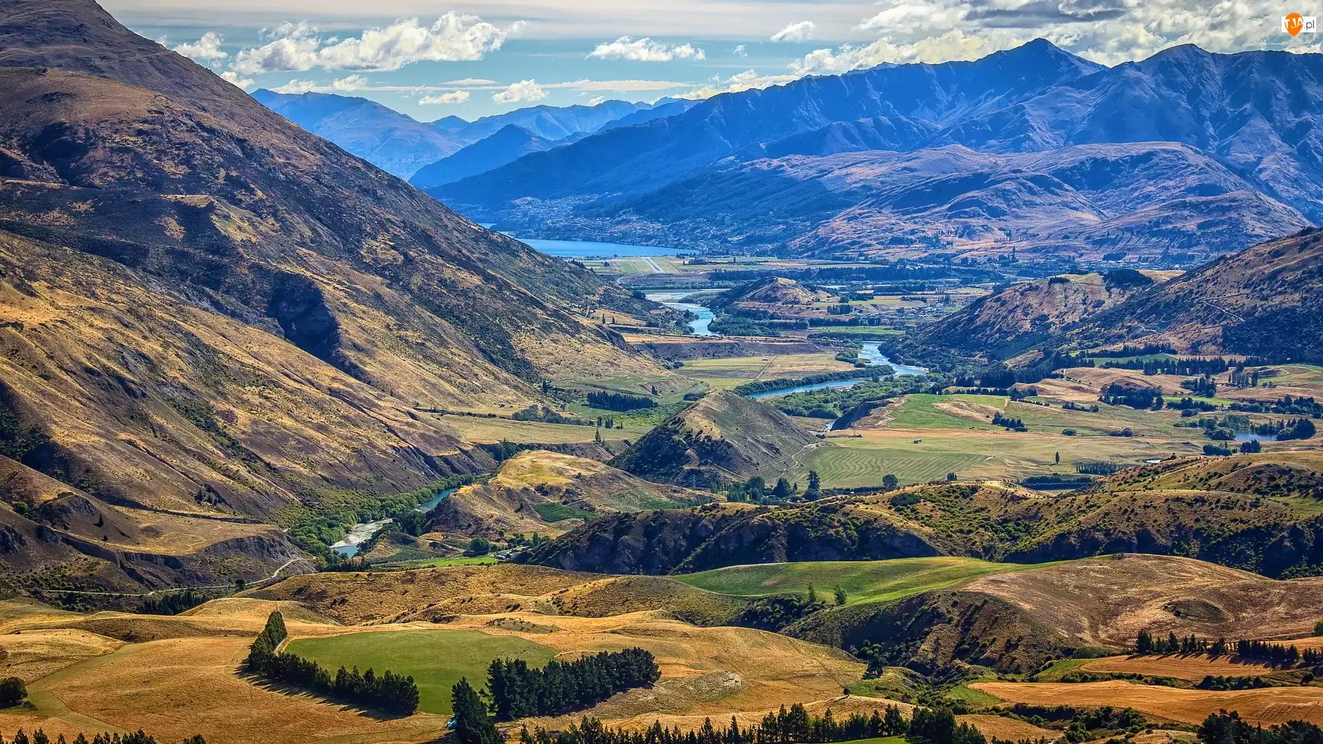 Góry, Drzewa, Wzgórza, Nowa Zelandia, Rzeka, Wyspa Południowa