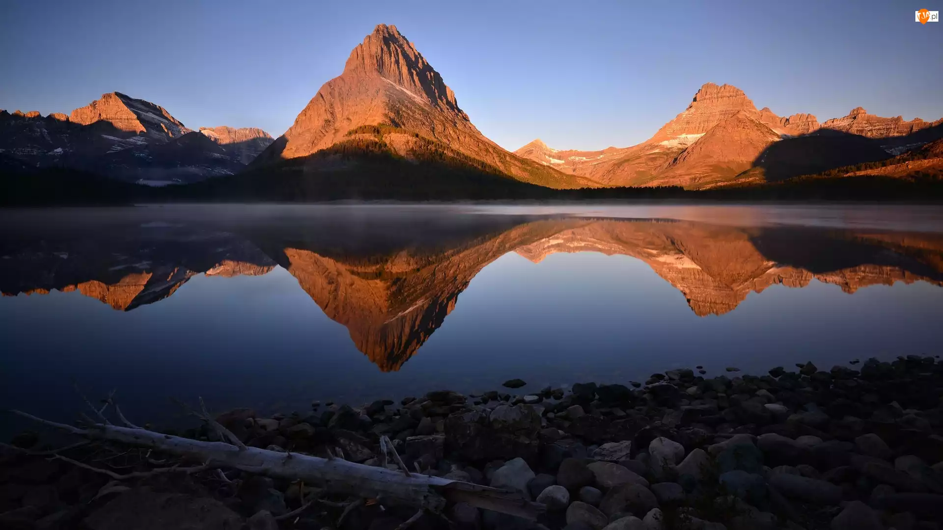 Góry, Stany Zjednoczone, Jezioro Swiftcurrent Lake, Kamienie, Stan Montana, Szczyt Grinnell Point, Odbicie, Park Narodowy Glacier