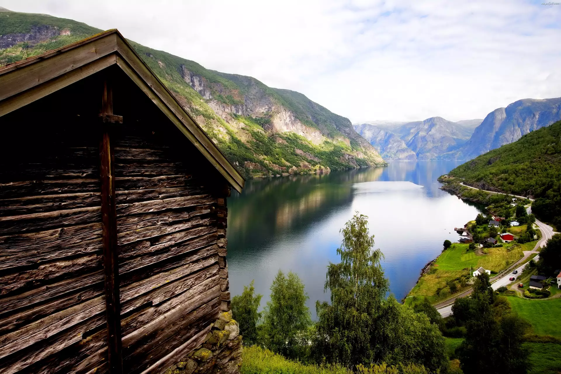 Góry, Wioska, Jeziorem, Nad, Droga