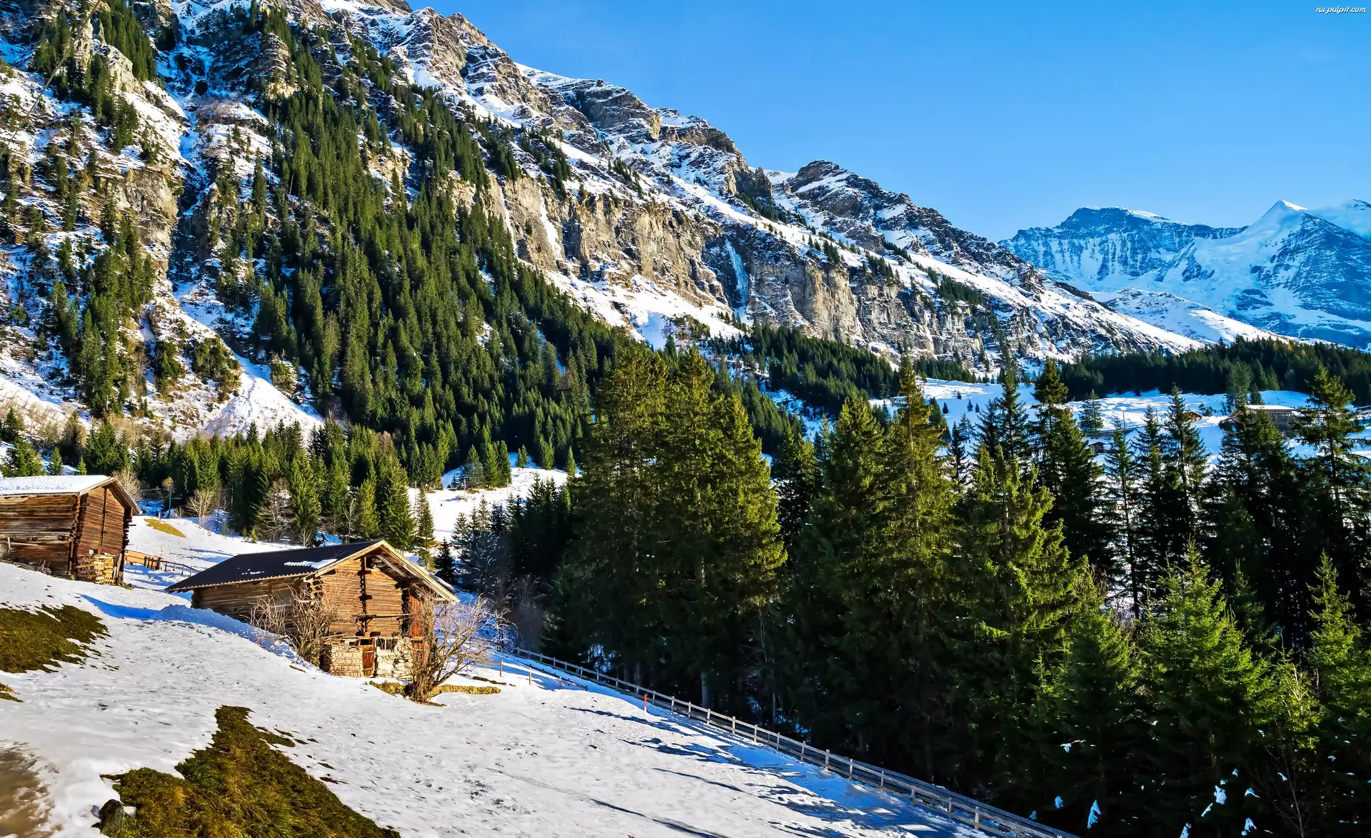 Góry, Zima, Szopy, Cień, Las, Światło