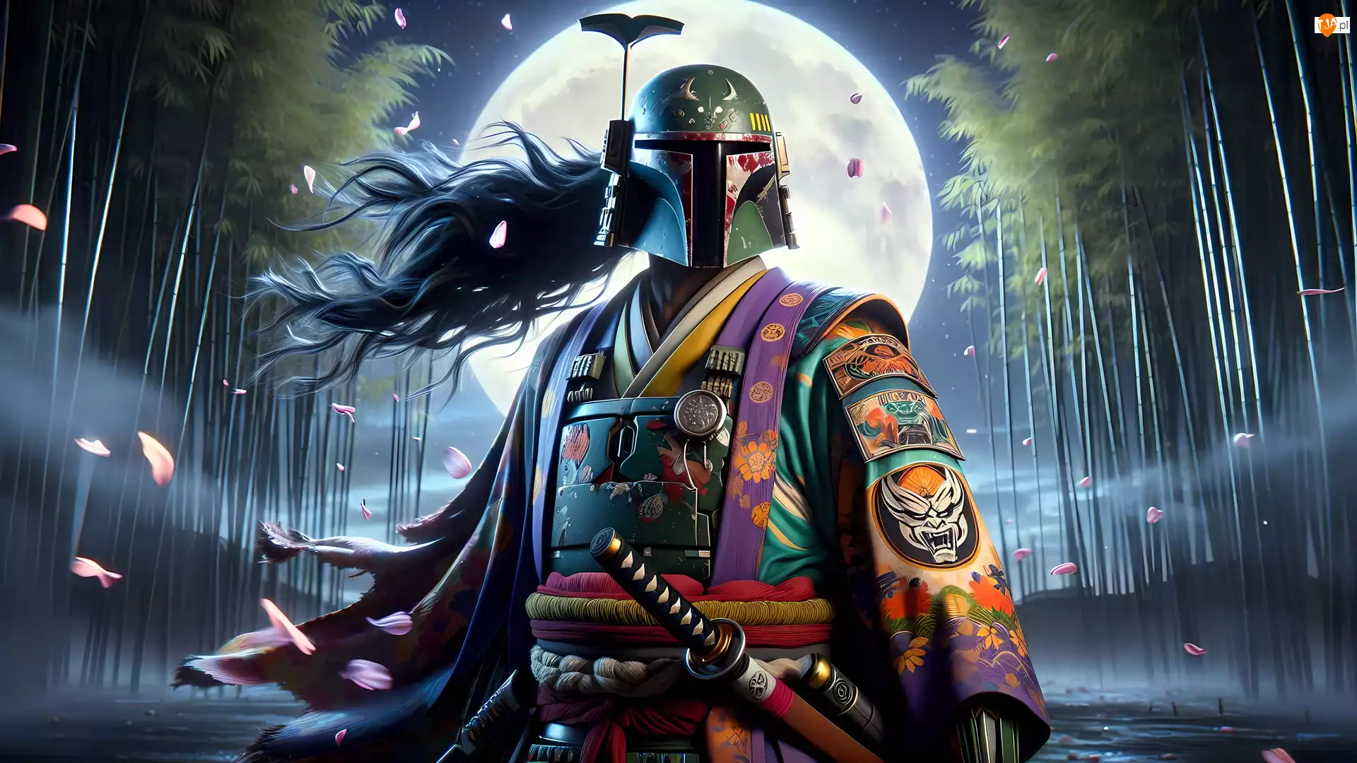 Gra, Postać, Księżyc, Star Wars Fett Legacy, Boba Fett, Drzewa, Grafika, Kimono