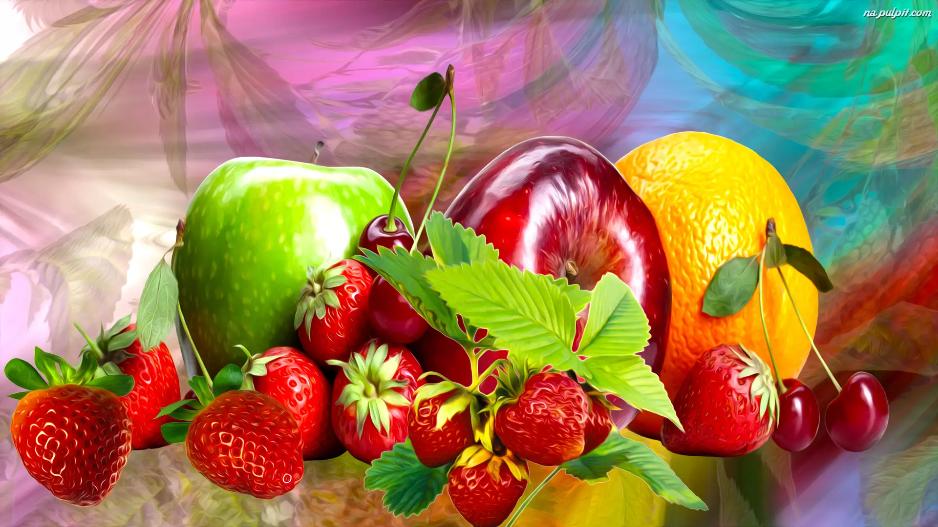 Truskawki, Grafika, Pomarańcza, Jabłka, Wiśnie