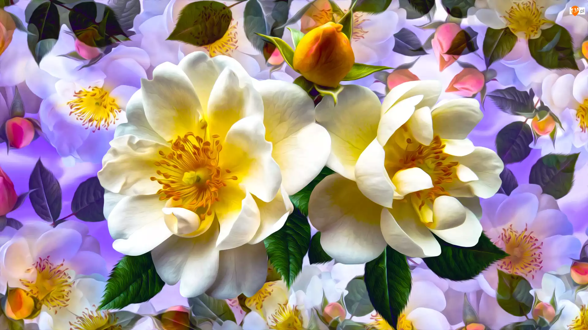 Kolorowe, Grafika, Dzika róża, Kwiaty, Tło
