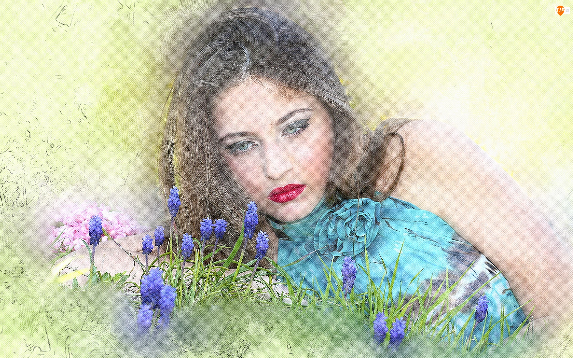Szatynka, Szafirki, Kobieta, Grafika, Kwiaty