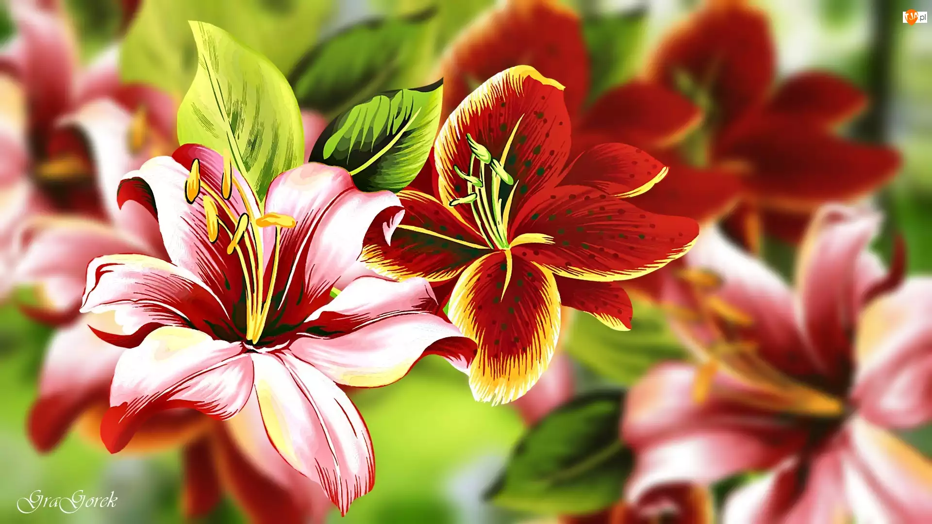 Grafika 2D, Kwiaty, Rozkwitnięte, Lilie