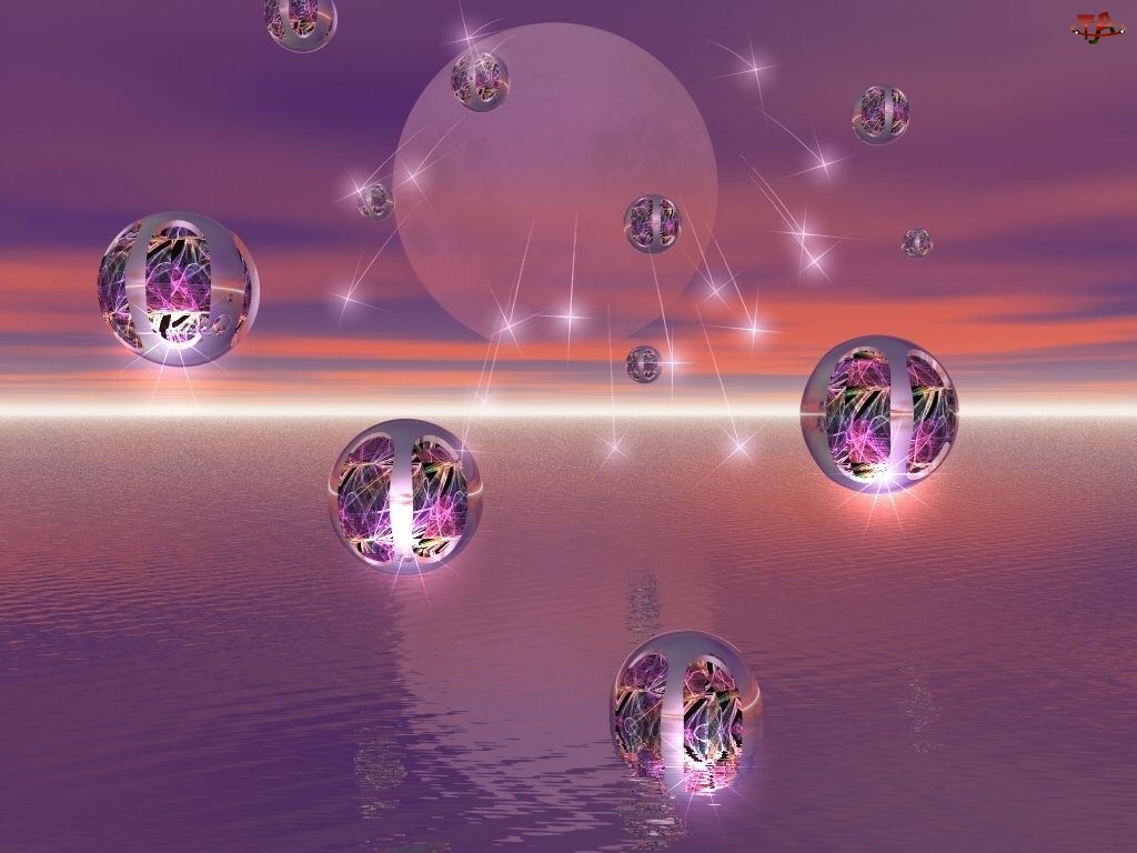 Grafika 3D, Fioletowe, Błyszczące, Kule