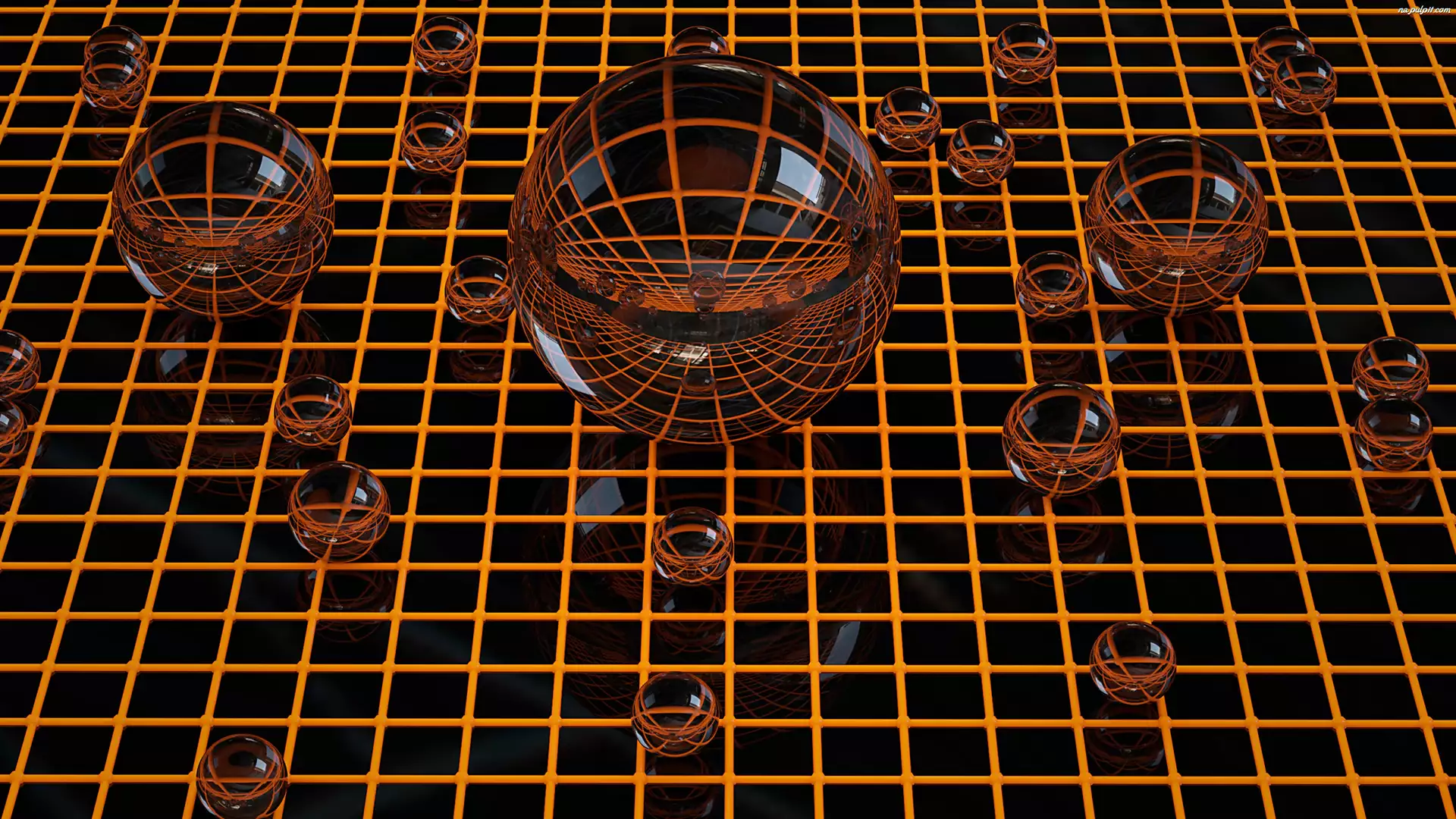 Grafika 3D, Szklane, Kule, Siatka