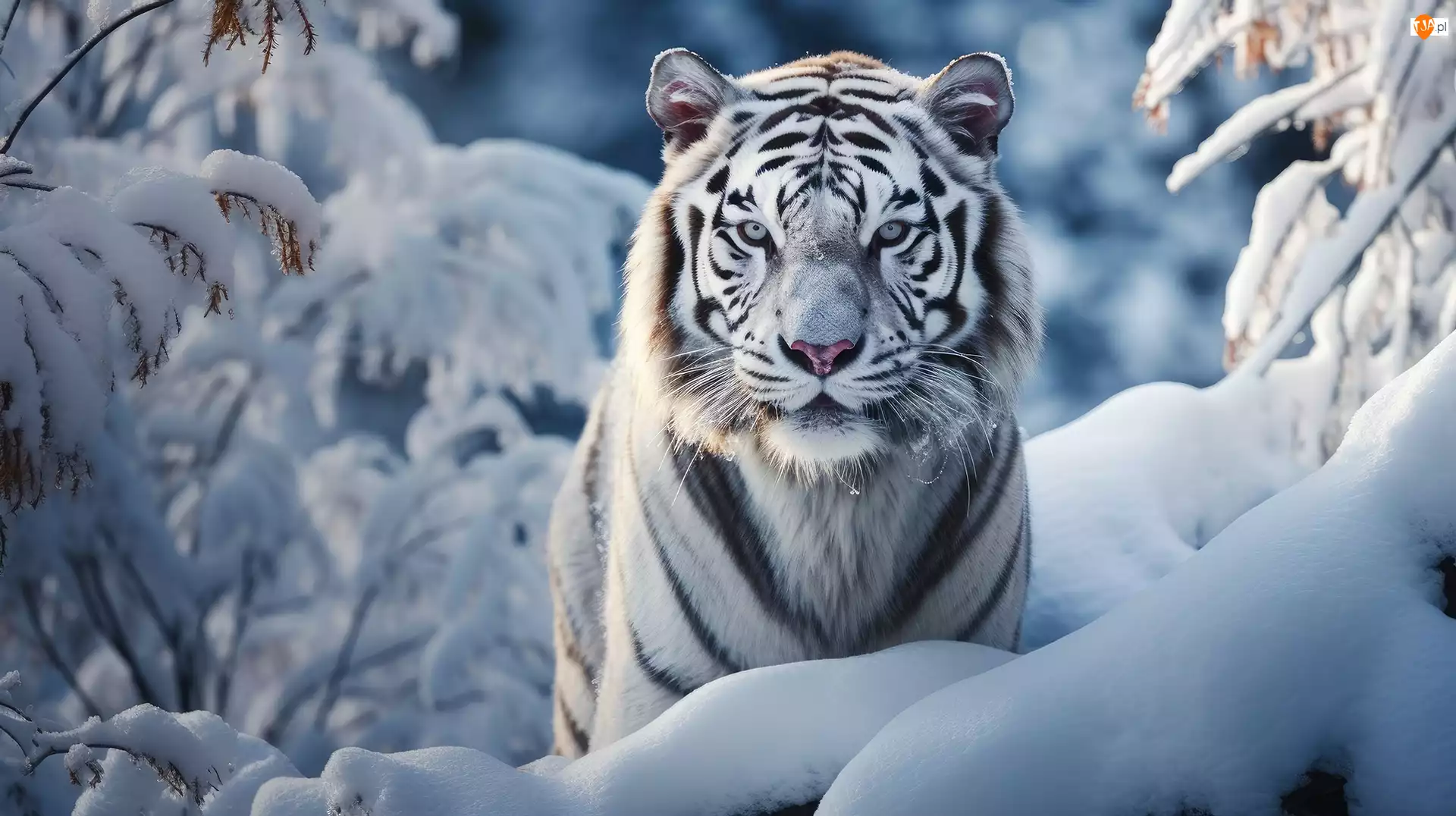 Tagi: Grafika AI Biały Tygrys Zima