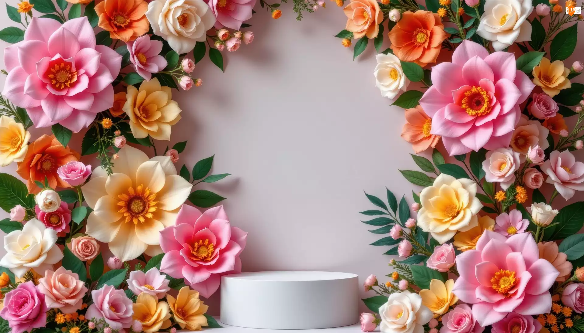 Grafika AI, Kolorowe, Kwiaty, Podium