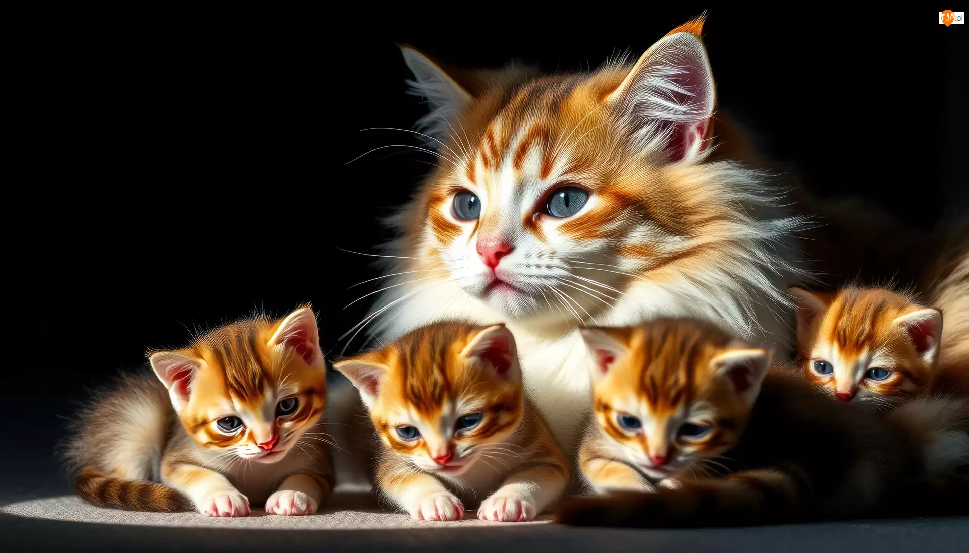 Grafika AI, Kot, Rude, Kocięta