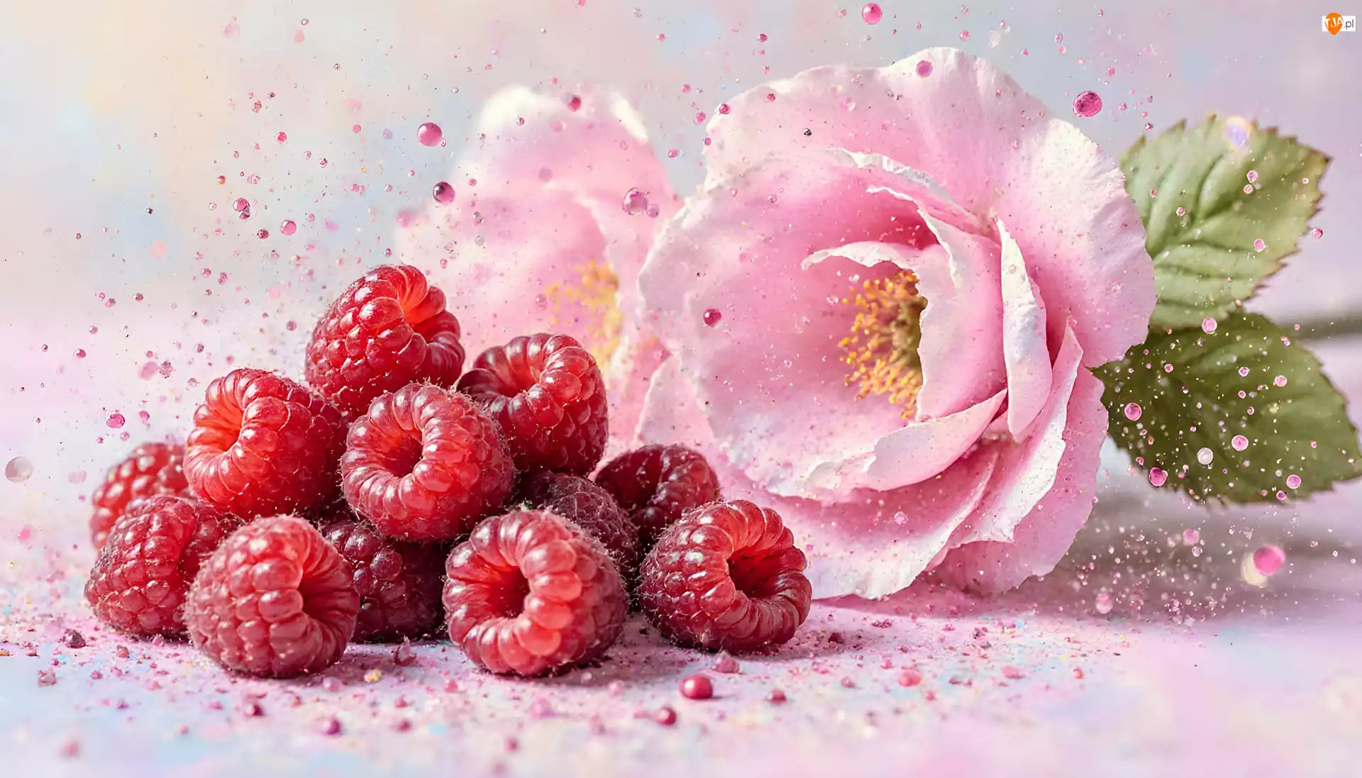 Grafika AI, Maliny, Różowe, Kwiaty
