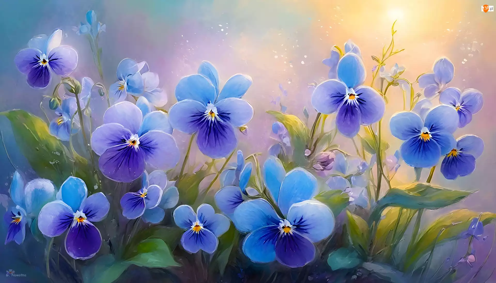 Grafika AI, Niebieskie, Bratki, Kwiaty