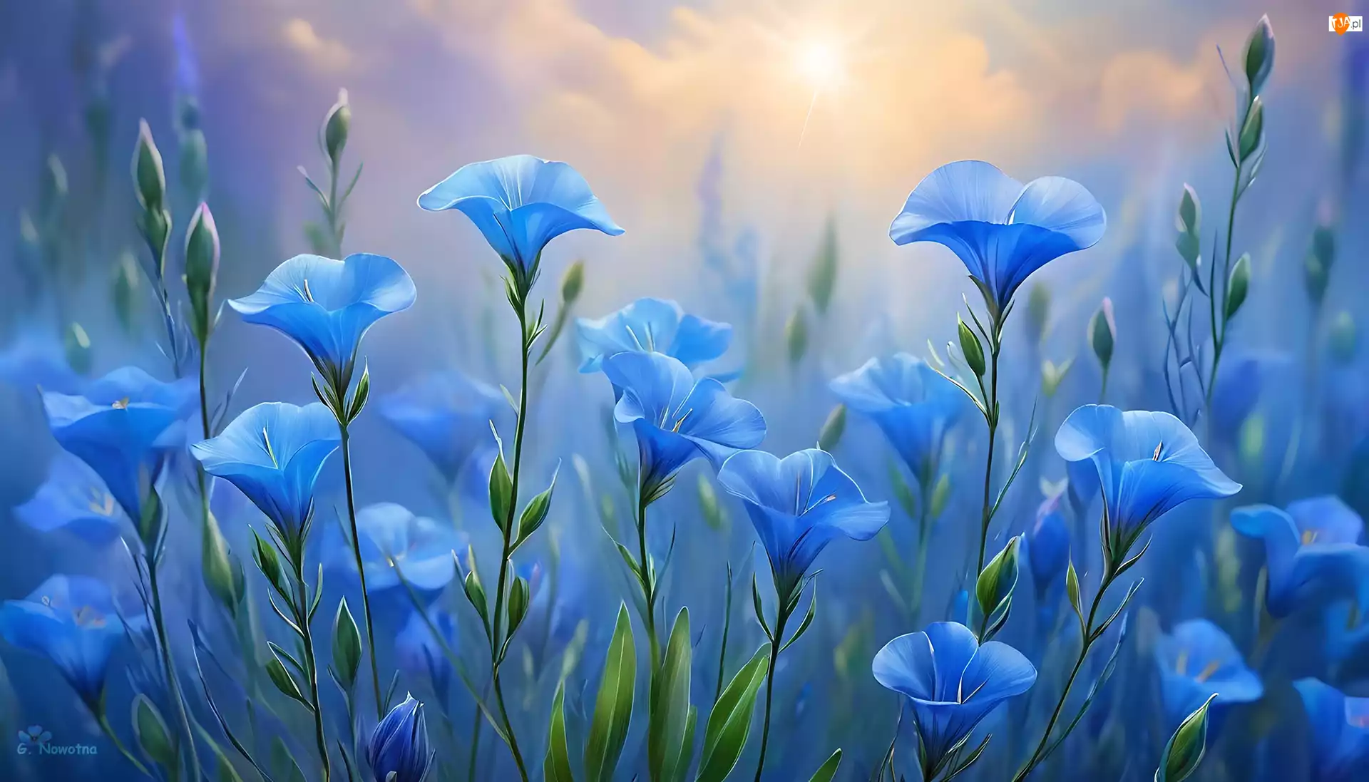 Grafika AI, Niebieskie, Kwiaty, Niebo