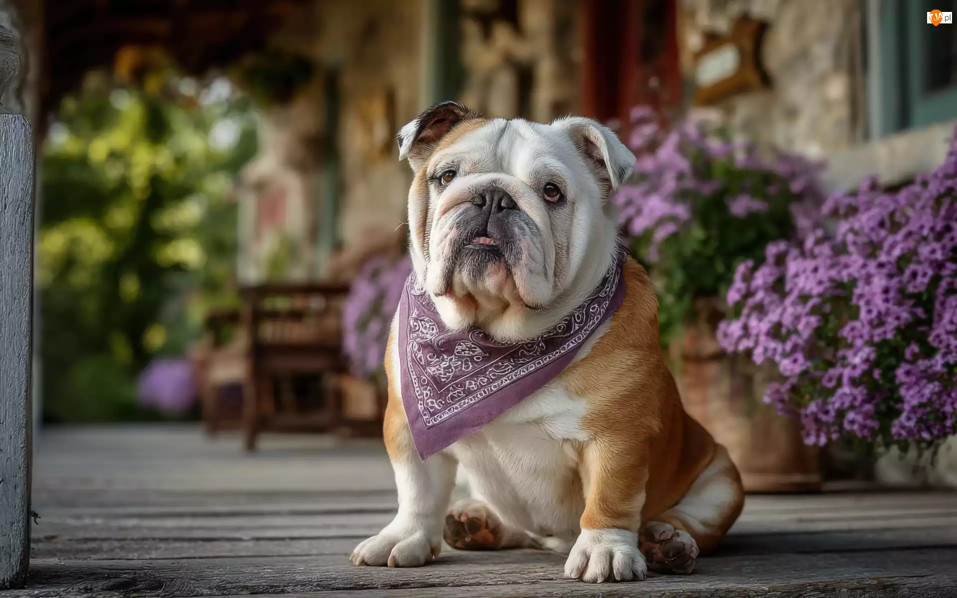 Grafika AI, Pies, Buldog angielski, Apaszka