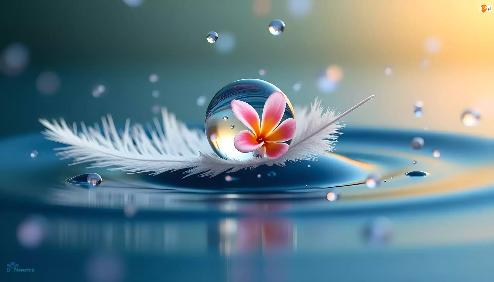 Grafika AI, Piórko, Kropla, Kwiat