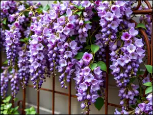Grafika AI, Fioletowe, Kwiaty, Balustrada