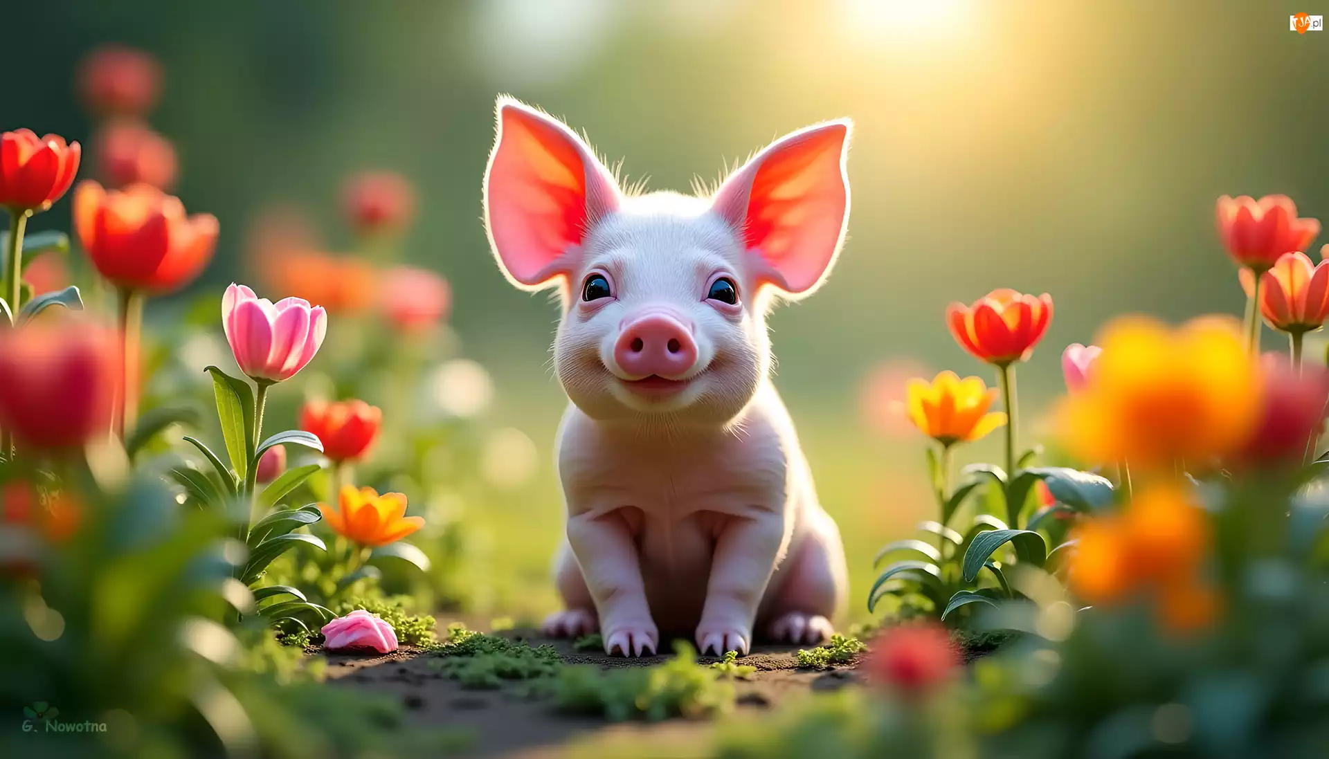 Grafika AI, Prosiaczek, Świnka, Kwiaty