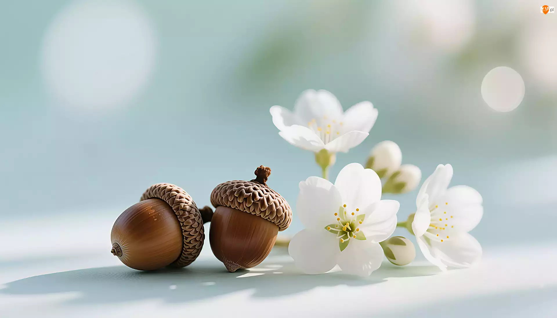 GRafika AI, Żołędzie, Białe, Kwiaty