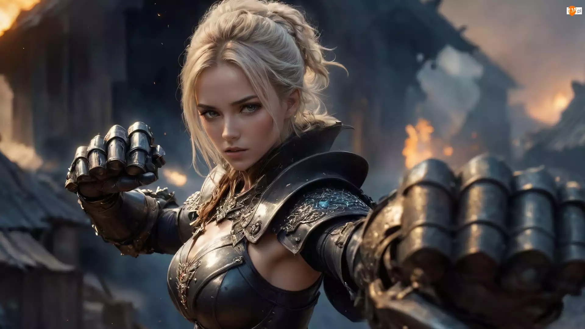Grafika, Dziewczyna, Blondynka, Zbroja