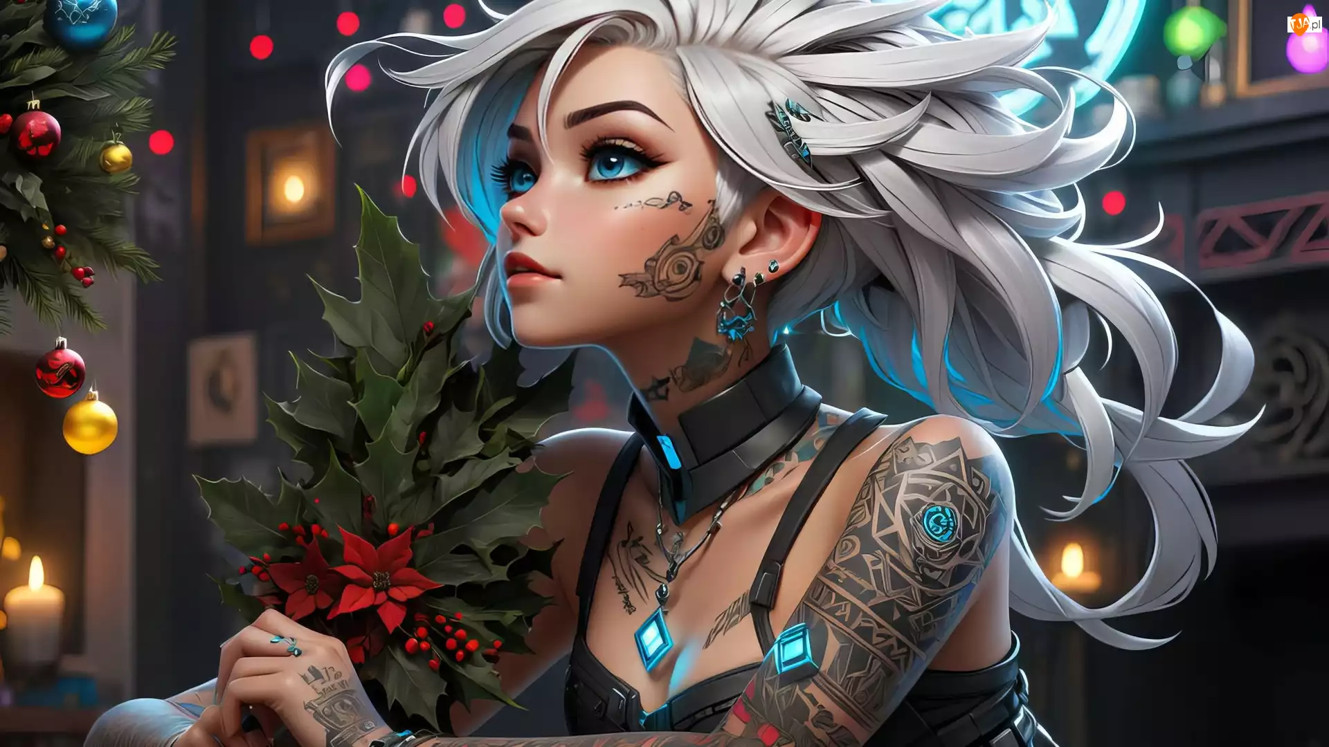 Grafika, Dziewczyna, Tatuaże, Choinka