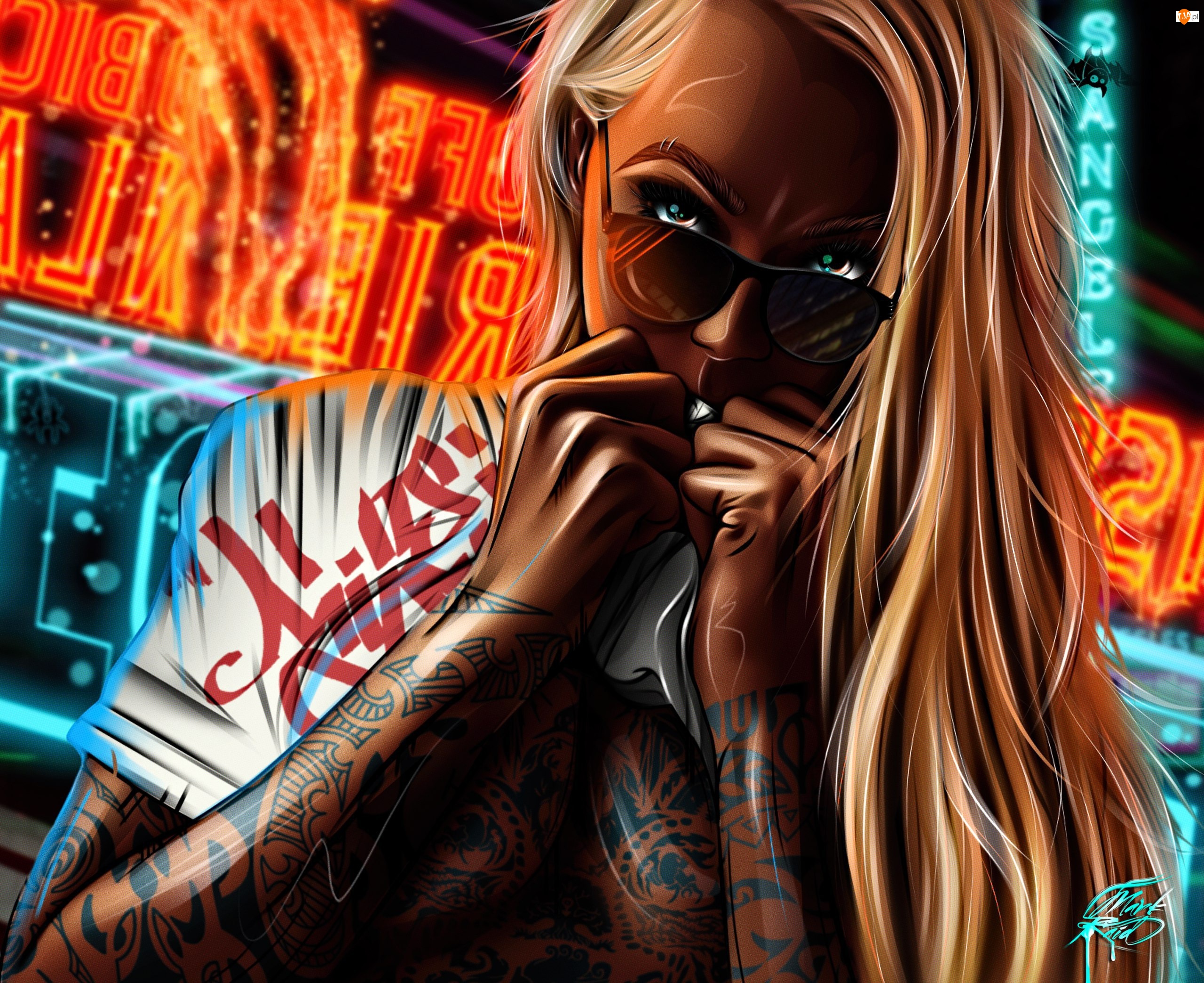 Dziewczyna, Grafika, Okulary, Tatuaż
