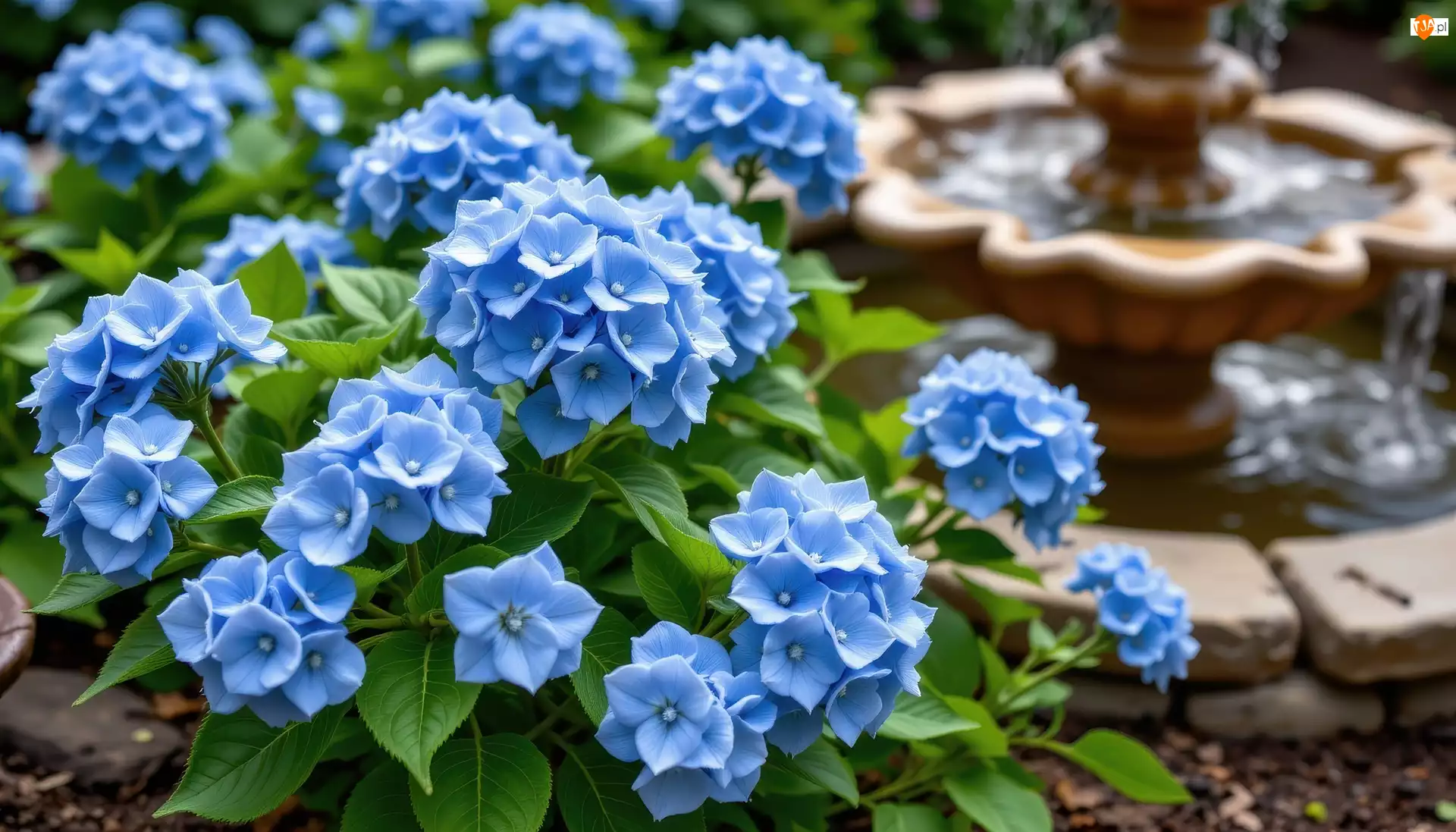 Grafika, Hortensje, Niebieskie, Kwiaty