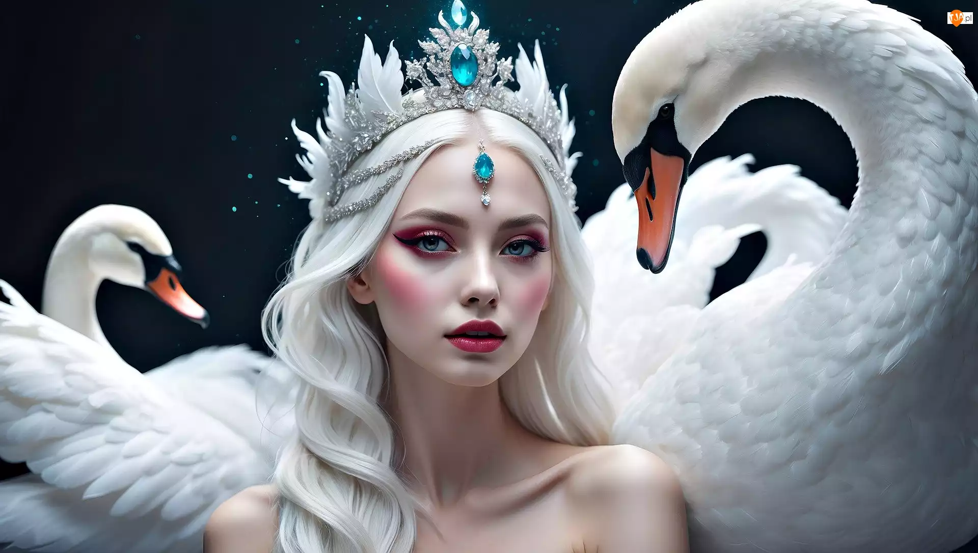 Grafika, Kobieta, Biżuteria, Łabędzie