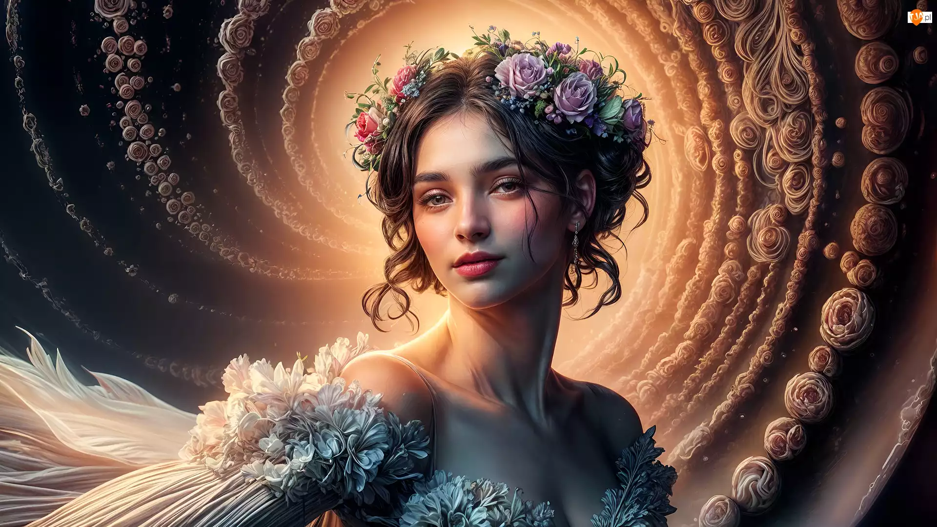 Grafika, Kobieta, Wianek