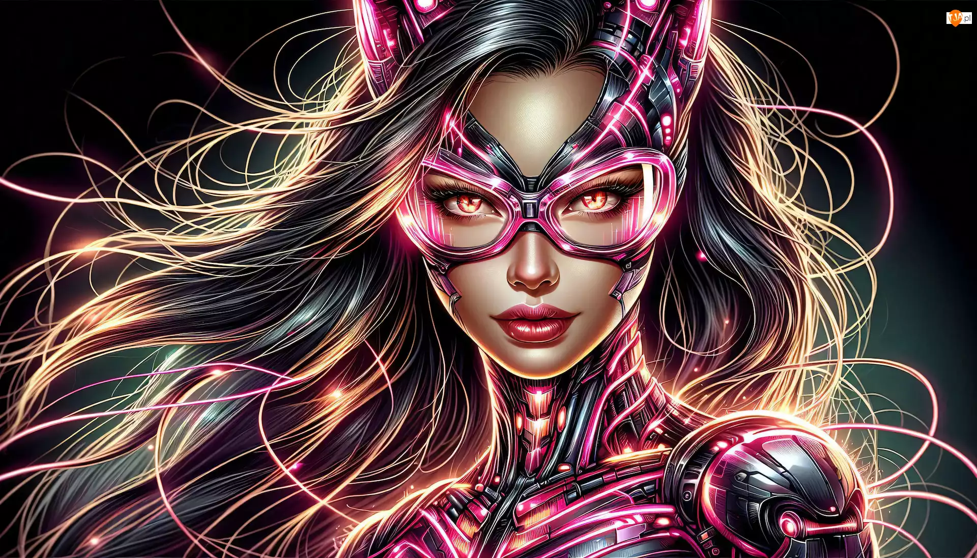 Grafika, Kobieta, Włosy, Robot, Maska, Rozświetlone