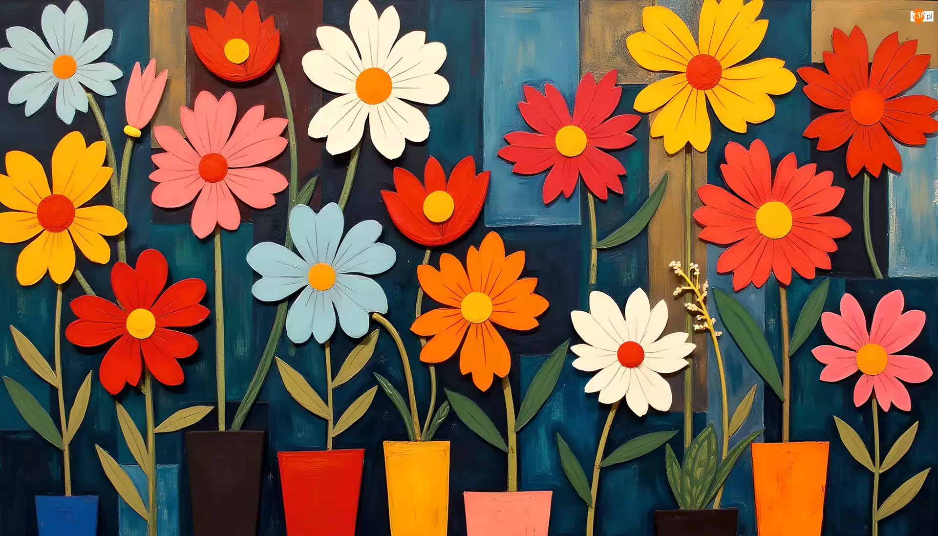 Grafika, Kolorowe, Kwiaty, Doniczki
