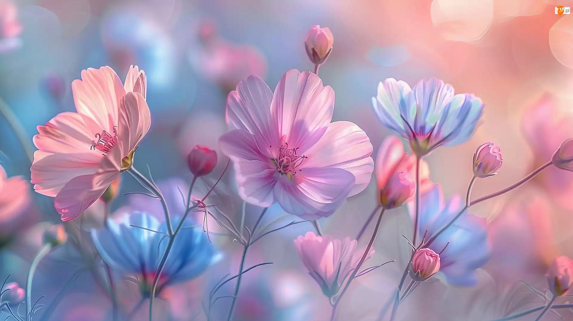 Grafika, Kwiaty, Niebiesko-różowe, Tło