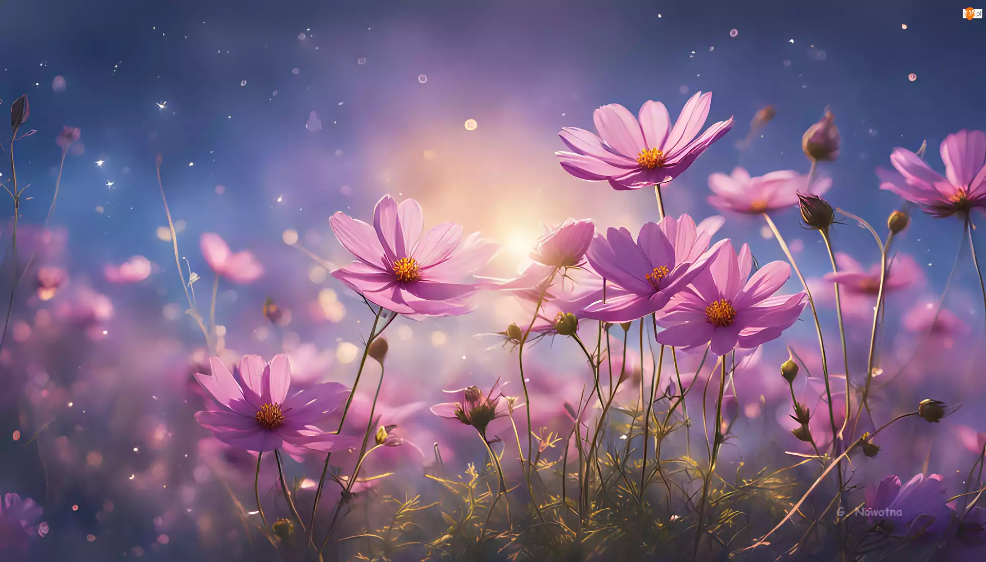 Grafika, Kosmea, Różowe, Kwiaty