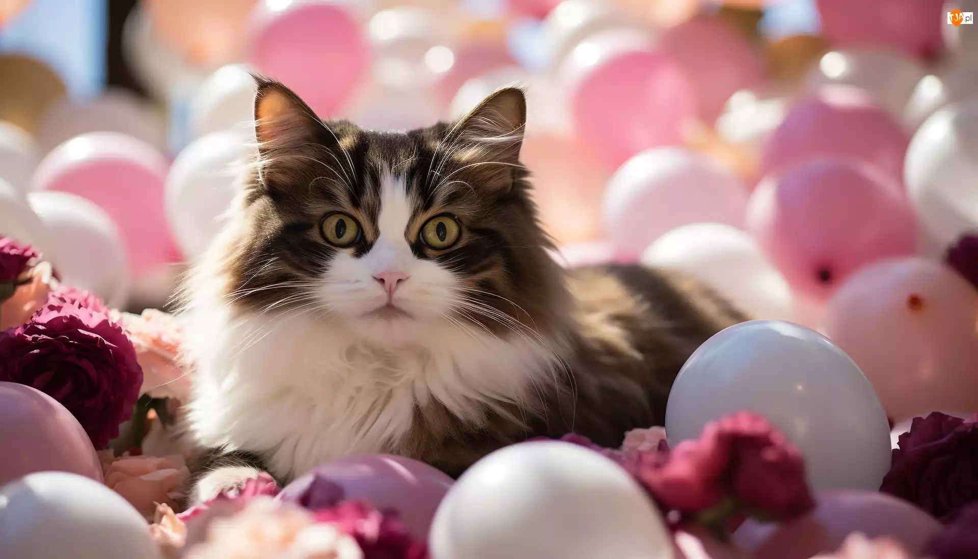 Grafika, Kot, Spojrzenie, Balony