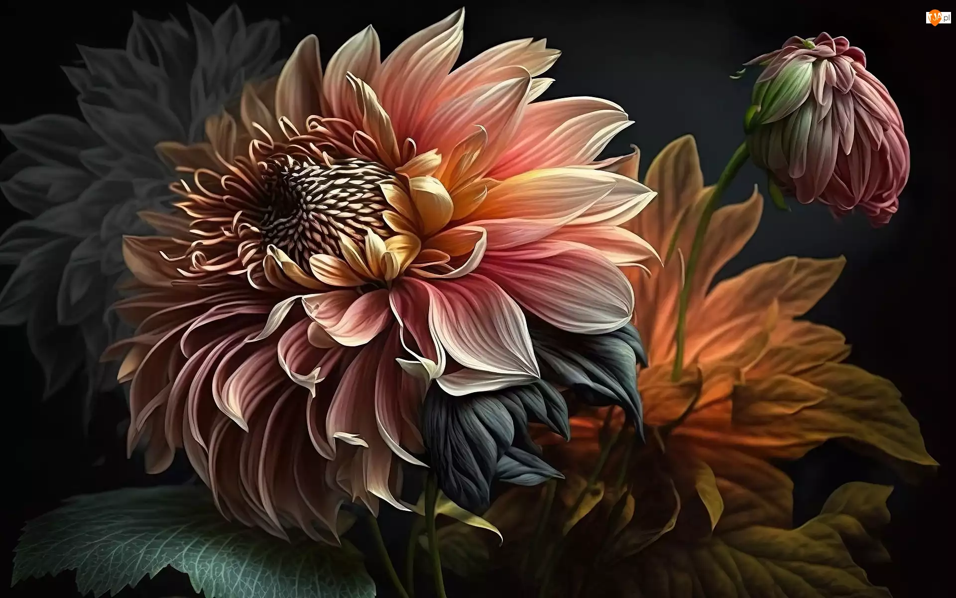 Grafika, Kwiaty, Dalie, Zbliżenie