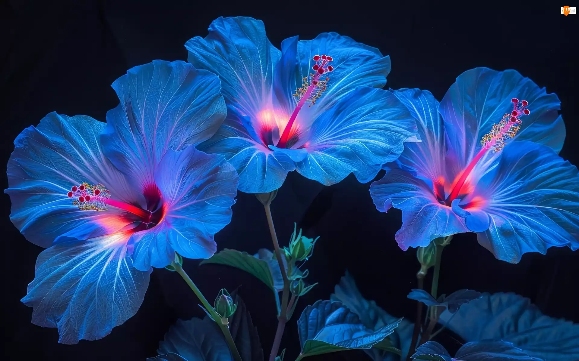 Grafika, Kwiaty, Niebieskie, Hibiskusy
