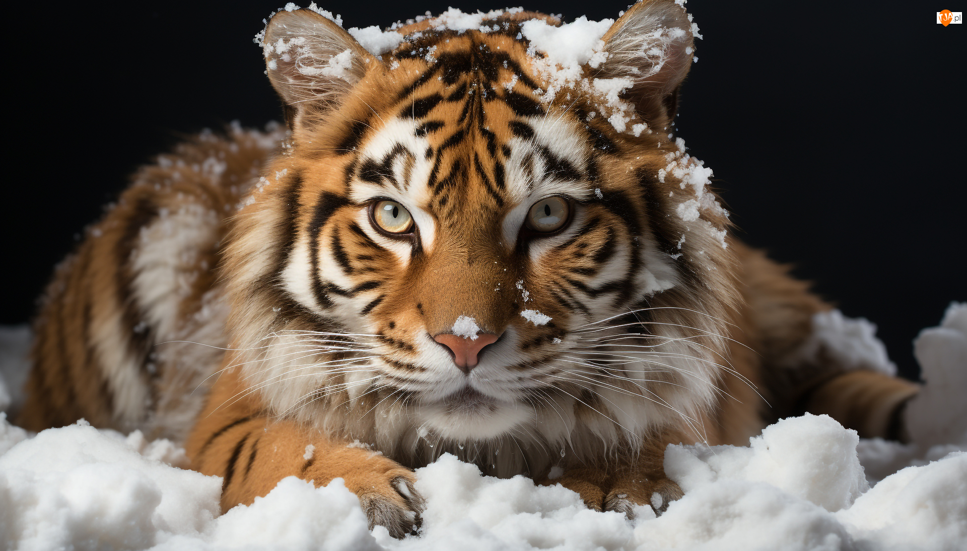 Grafika, Śnieg, Tygrys, Spojrzenie