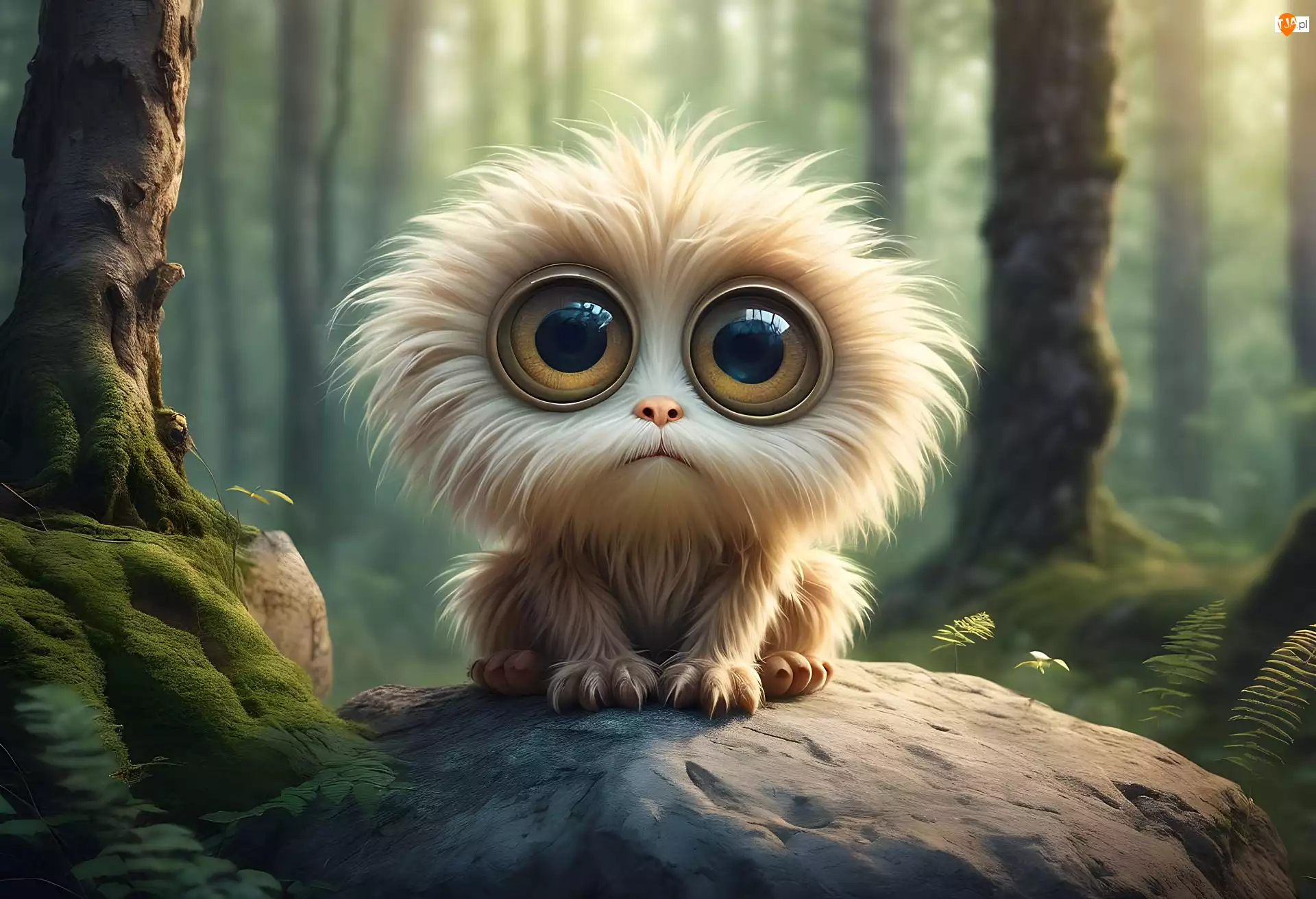 Stworek, Biały, Las, Grafika, Kamień, Światło