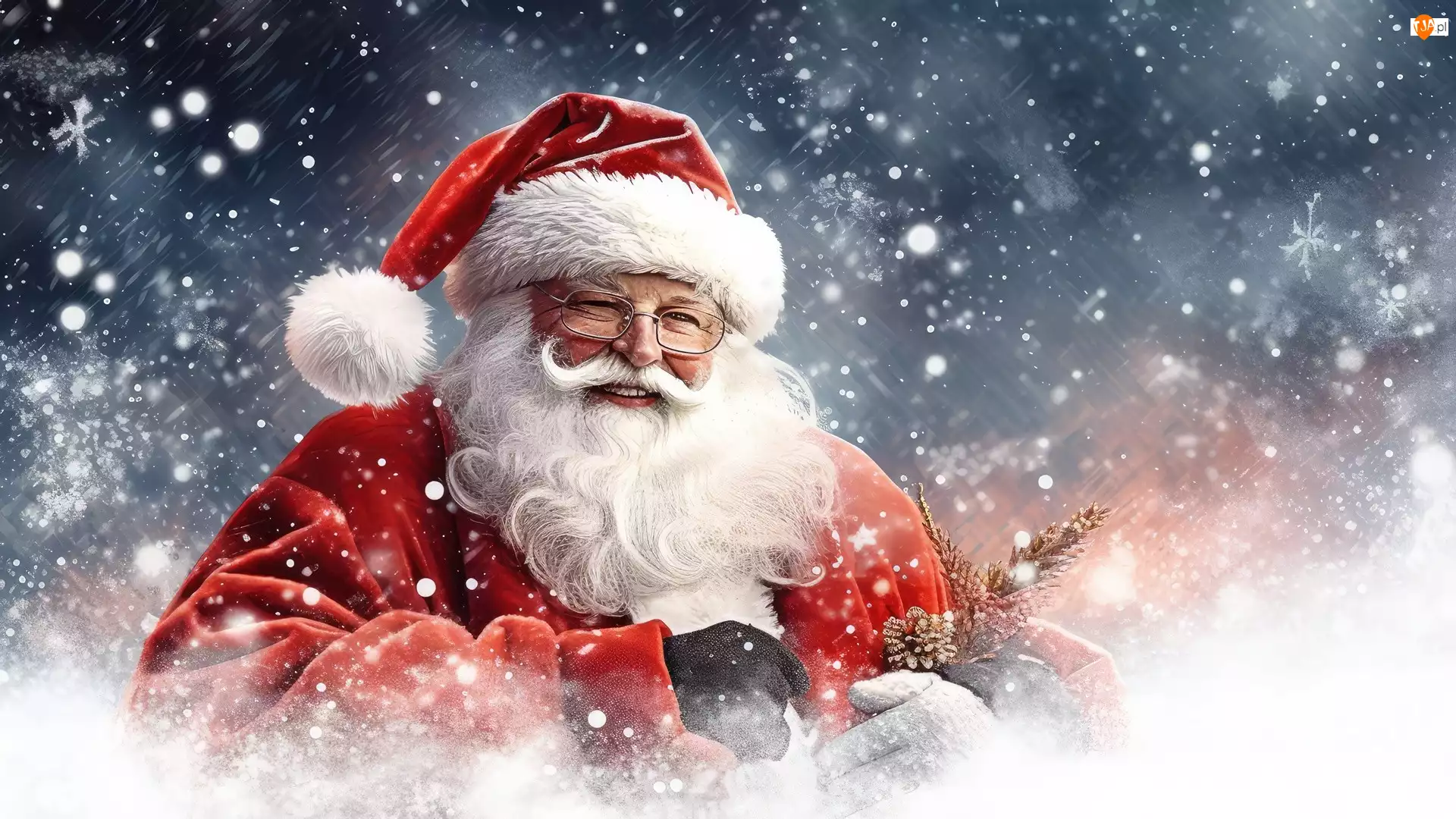 Grafika, Mikołaj, Uśmiech, Śnieg