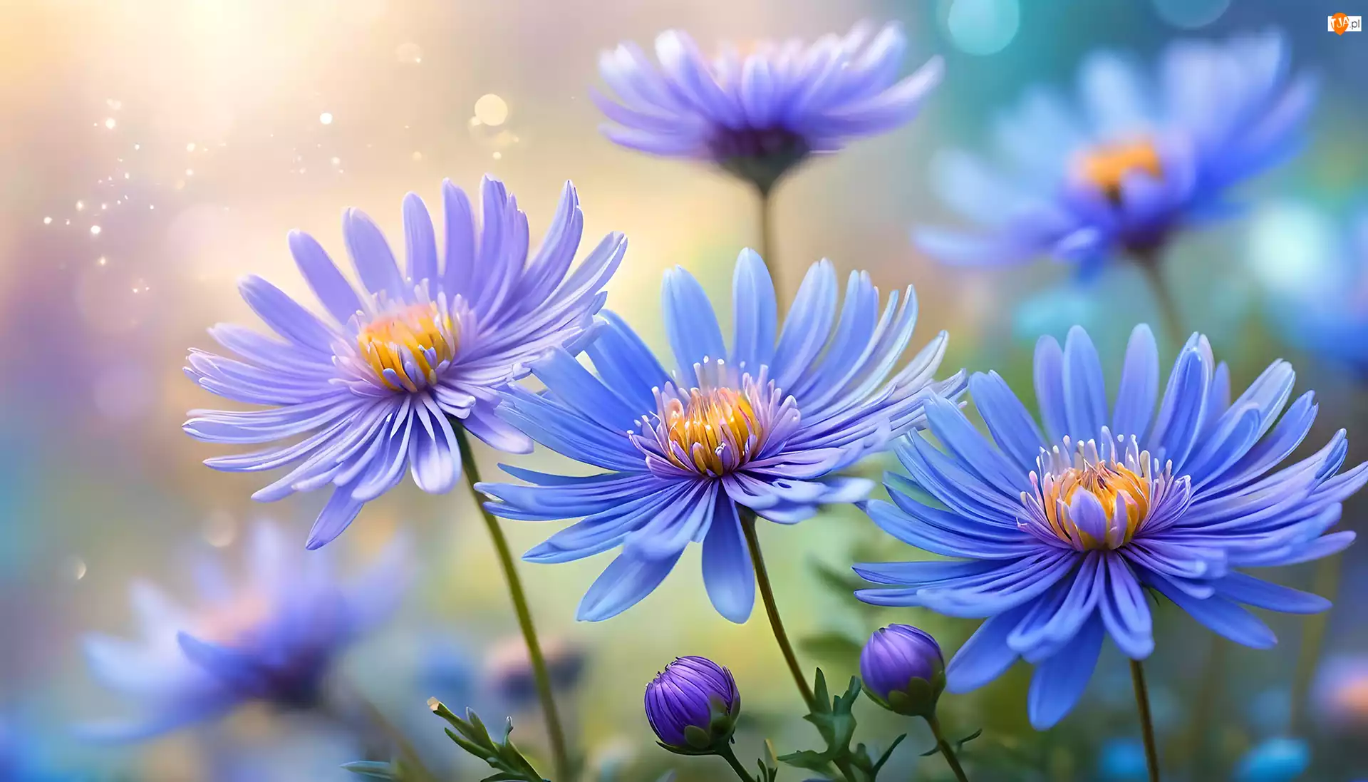 Grafika, Niebieskie, Rozkwitnięte, Kwiaty