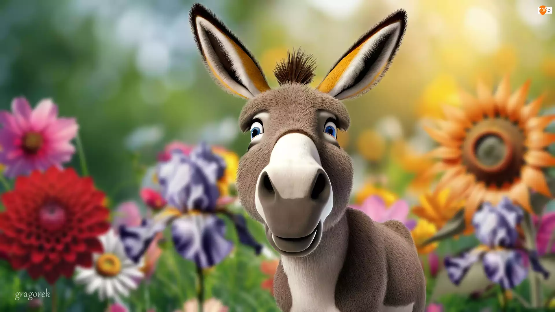 Grafika, Osioł, Kwiaty, Ogród