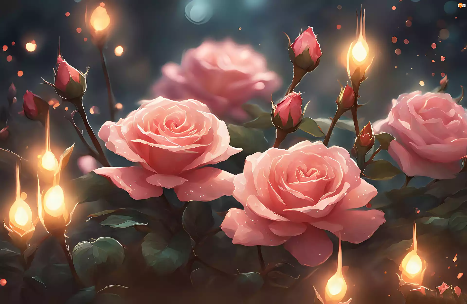 Grafika, Róże, Różowe, Kwiaty