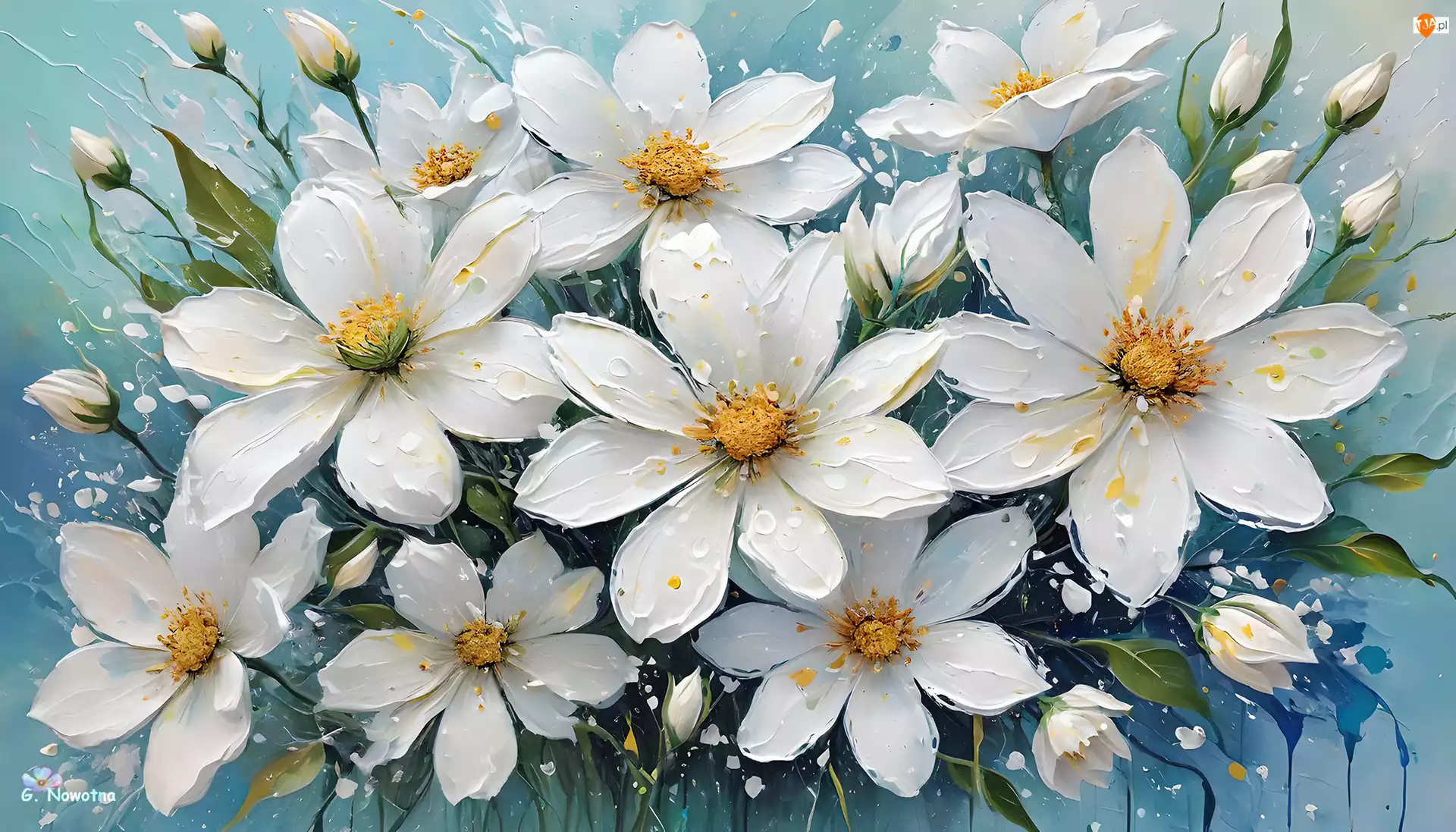 Grafika, Rozkwitnięte, Białe, Kwiaty