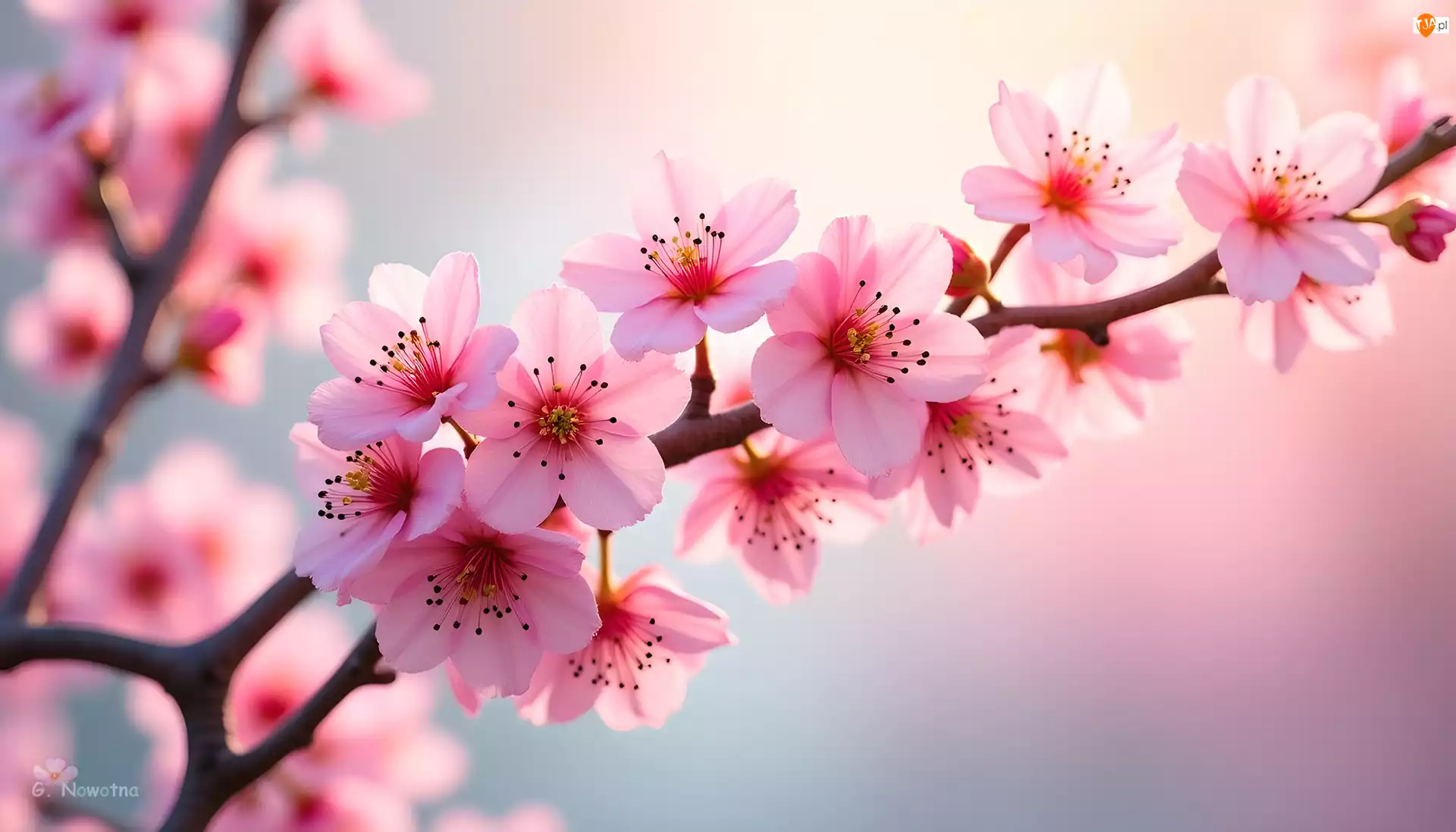 Grafika, Różowe, Kwiaty, Drzewo owocowe